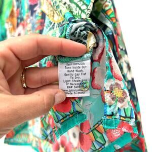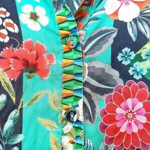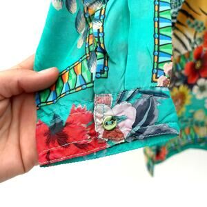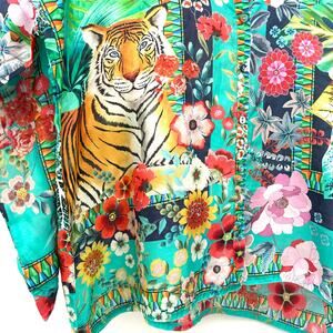 Johnny Was Tigres Et Fleurs Silk Button Down Shirt Tropical Tiger XS Blouse