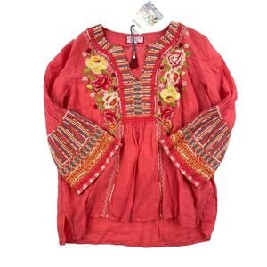 Johnny Was - Tilly Flare Boho Blouse in Red