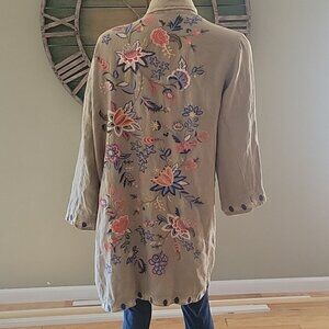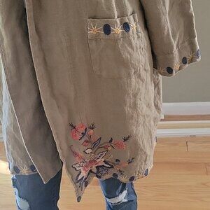 Johnny Was Tiwa Embroidered Heavy Linen Coat