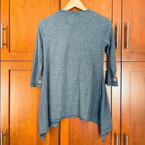 Johnny Was Top Embroidered Floral Three Quarter Sleeve Shirt Blue Size XS