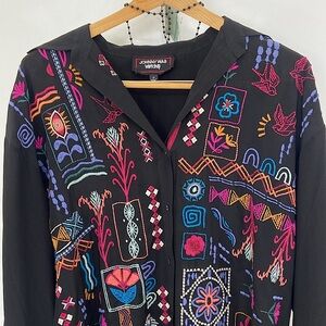 Johnny Was Top Silk Embroidered Oversized Long Sleeve Sz XS