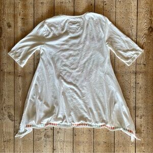 Johnny Was Top White Embroidered Short Sleeve Flowy Boho Womens XS