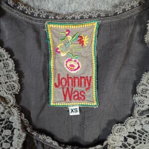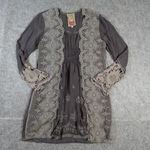 Johnny Was Top Womens Extra Small Embroidered Boho Eyelet Tunic Prairie Gray