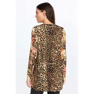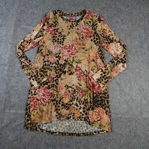 Johnny Was Top Womens Small Vintage Rose Swing Floral Animal Print Cheetah Tunic