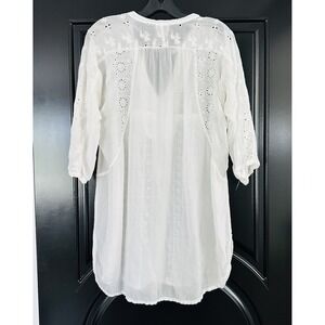 Johnny Was Tunic Blouse Medium White Sheer Eyelet Boho Coverup Western Cottage. Condition is Pre-owned - Excellent.