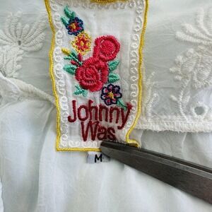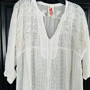 Johnny Was Tunic Blouse Medium White Sheer Eyelet Boho Coverup Western Cottage