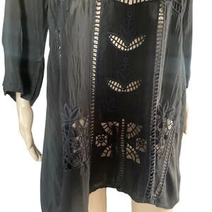 Johnny Was Tunic Dress XL Boho Hippie Cut Out Embroidered Long Sleeves Black