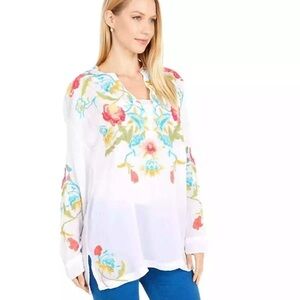 Johnny Was Vagabound Blouse Floral Embroidered Tunic Blouse Boho