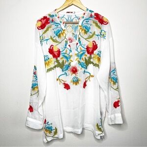 Johnny Was Vagabound Blouse Floral Embroidered Tunic Boho