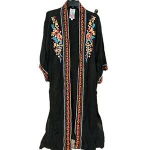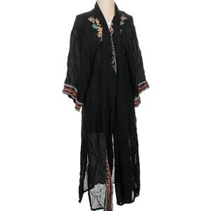 Johnny Was Vanessa Embroidered Kimono Duster Pop Over XS Oversized Black Boho