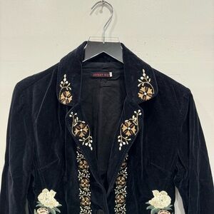 Johnny Was Velvet Embroidered Blazer Jacket 3 Button Black Small