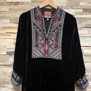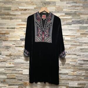 Johnny Was Velvet Heavily Embroidered Dress | Boho Luxe Tunic, Silk, MSRP $400