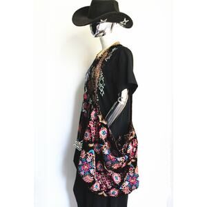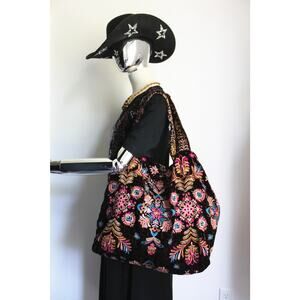Adorned with a vibrant kaleidoscope of color, the Brandi Velvet Tote Bag is embellished with intricate embroidered accents for a bold, textured look. Designed with both handles and a shoulder strap for versatility, this unique bag is finished with a magnetic snap and interior pockets. Pair with casual looks as an everyday bag with elevated style. Retail 378.