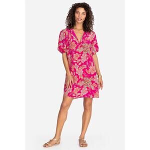 Johnny Was Vesna Pink Floral Print Short Sleeve Silk Mini Dress Size Small