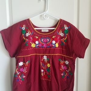 Color: Burgundy base with multicolor floral embroidered