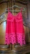 Vibrant hot pink cami blouse with intricate lace detailing. Features delicate straps and floral patterns. Ideal for a stylish and comfortable night.