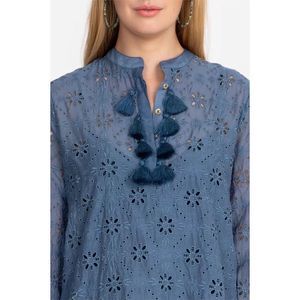 Johnny Was Vidya Eyelet Blue Blouse Tunic Medium perfect condition.