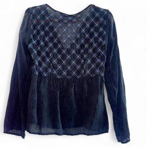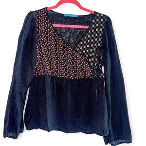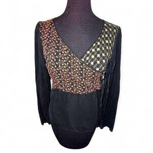 Vintage Johnny Was black orange, yellow & blue embroidered half wrap top (no size tag, fits like a Small)