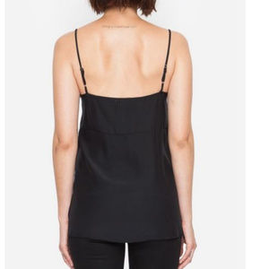 A floral printed gauze panel is overlaid on a sleek silk cami tank that's trimmed with an edgy frayed neckline. - V-neck with frayed trim - Adjustable spaghetti straps - Slips on over head - Silk construction - Sheer floral-printed front gauze panel - Vented hem - Approx. 28.5" length (size S) - Imported