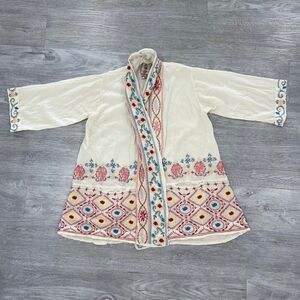 Johnny Was Waverly Women’s XS Embroidered Kimono Embroidered Pockets Relaxed