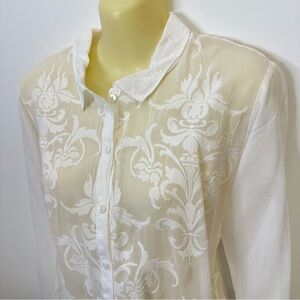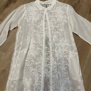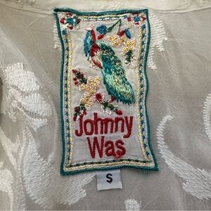 Johnny Was White Embroidered Tunic Button Down Shirt size S