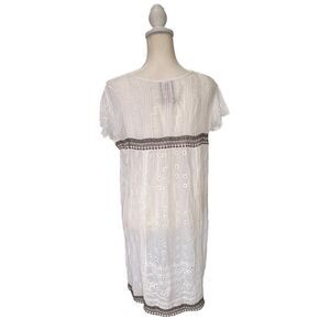 Johnny Was White Eyelet Lace Mini Dress With Embroidered Trim Size L