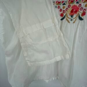Johnny Was White Floral Embroidery Tunic Blouse Women's Size Small Bohemian