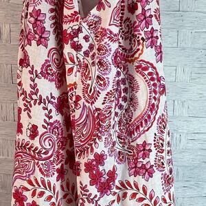 Johnny Was White Red sleeveless dress linen Bahamian cotton lining hippie coastal