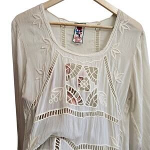 Johnny Was Women Ivory Sheer Floral Embroidered Dress S Boho Silky Peasant Fairy