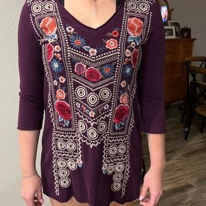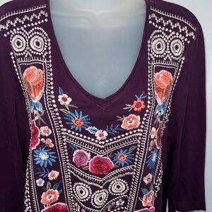 Johnny Was Women Purple Floral Embroidered Cotton Rayon Shirt Size Small Boho