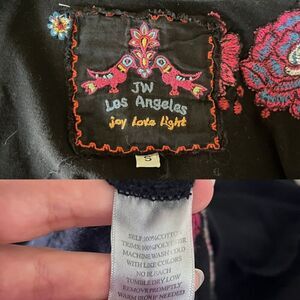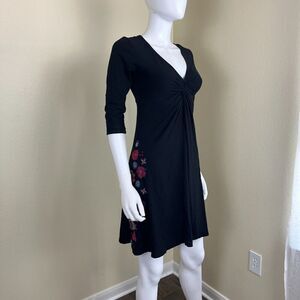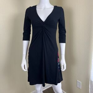 Johnny Was Women Size Small Black Floral Embroiderd Mini Jersey Tunic Dress Boho