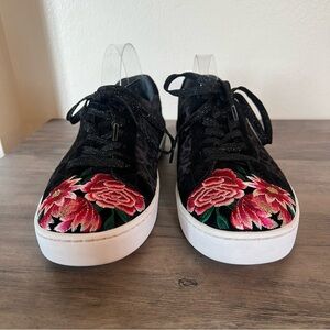 Johnny Was Womens Black Leopard Floral Embroidered Boho Sneakers Size 9.5
