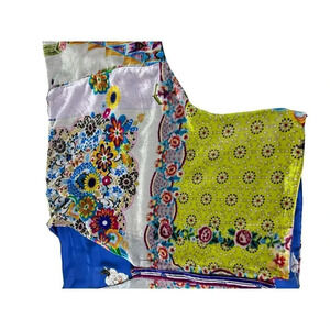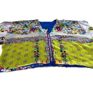 Johnny Was Women's Blue silk and velour Floral Boho Chic Top Size S