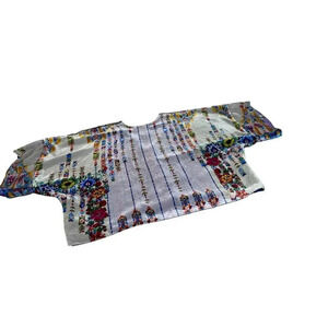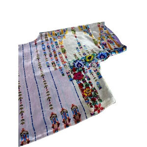 Johnny Was Women's Blue Embroidered Floral Boho Chic Tunic Top Size S