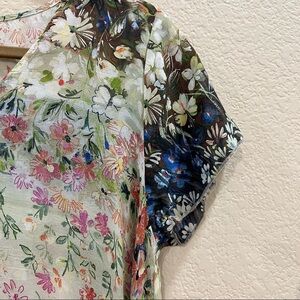 EUC. The Johnny Was Women's Cupra Rayon Short Sleeve Blouse in size small is a boho fairy cottagecore piece perfect for a variety of occasions. The floral pattern, round neckline, and pullover closure add a touch of nature-inspired charm to the cream-colored blouse. Made from rayon, this blouse is ideal for summer, fall, and spring seasons, making it a versatile and stylish addition to any woman's wardrobe.
