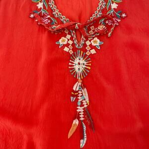* Color: Orange coral with multicolored embroidery