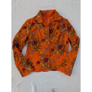 Johnny Was Wmns Floral Embroidered Blazer Jacket Size M Orange Iconic Statement. This jacket/ blazer is amazing and so unique. See photos for measurements.