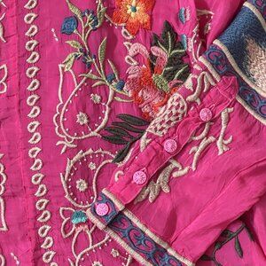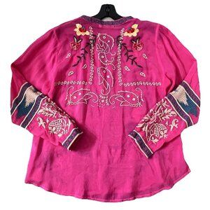 Johnny Was Women’s Pink Tamarind Tunic Top Size Medium Embroidered Floral Boho
