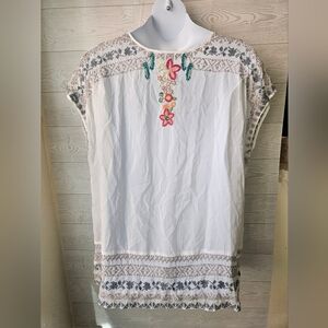 Johnny Was Women's Size 1X Embroidered White Tunic Top Plus Size Flowers