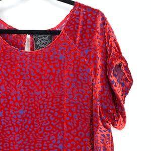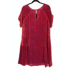 Johnny Was Women's Size L Doris Velvet Burnout Mini Dress Scoop Neck Solid Red