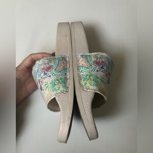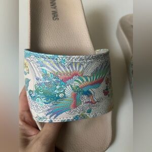 Oh-so-chic and effortlessly on-trend, The Light Dreamer Poolslide is the must-have accessory for Spring and summer. These timeless flats are perfect for going from beach to boulevard in a breeze. The whimsical print and bohemian-inspired details can seamlessly tie any warm-weather look together from your favorite bathing suits to beachy linen pants and white tees