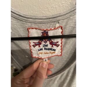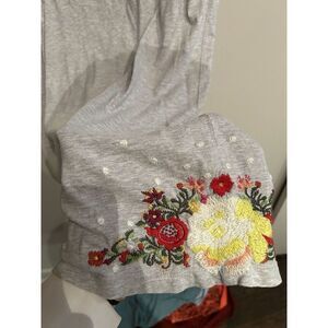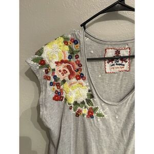 Johnny Was Womens Small Scoop Neck Embroidered Tunic Top Blouse Gray Floral