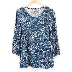Johnny Was Womens The Janie Favorite Puff Sleeve Knit Tee Beathery Blue Sz L NEW