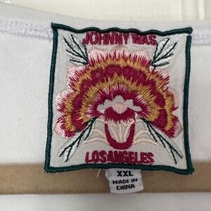 Excellent condition Johnny Was Tunic, Size XXL. Plus. Josephine Tunic. Floral Front, V-Neck Top. 3/4 sleeves with embroidery at the bottom. Slight Slits on both sides. Super soft and comfortable. 100% cotton