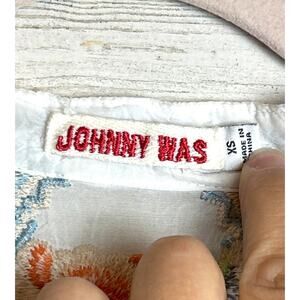 Johnny Was Women’s XS Harlow White Embroidered Sheer Tunic Blouse Top designer