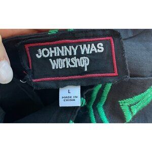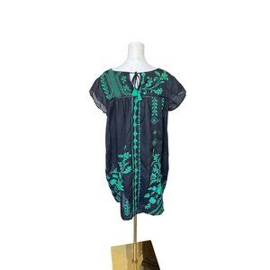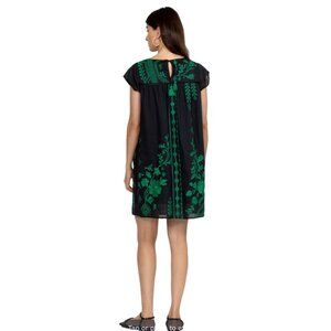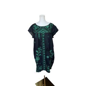 Johnny Was Workshop Embroidered Mini Black Shift Dress Size L Jade Cotton Floral