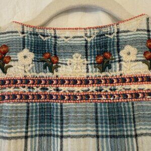 Johnny Was Workshop Juliene Estelle Floral Embroidered Plaid 90s Y2K Top Large