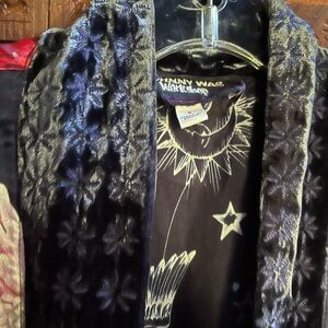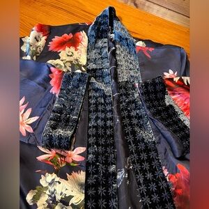 Johnny Was Workshop Kimono (Aster) Dark blue with red flowers. 100%Silk. Trim is velvet 82%rayon/18% silk. Zodiac figures on lining. Has pockets. Absolutely beautiful! New without tag.
