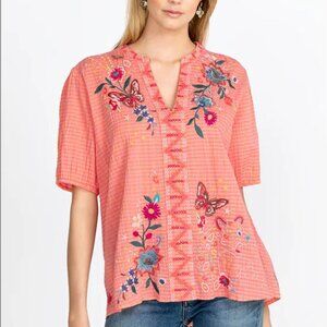 Johnny Was Workshop Olinda Puff Sleeve Effortless Blouse Embr Florals XS NWT