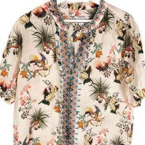 Johnny Was Workshop Top Second Loves Embroidered Bird Flower Print Medium